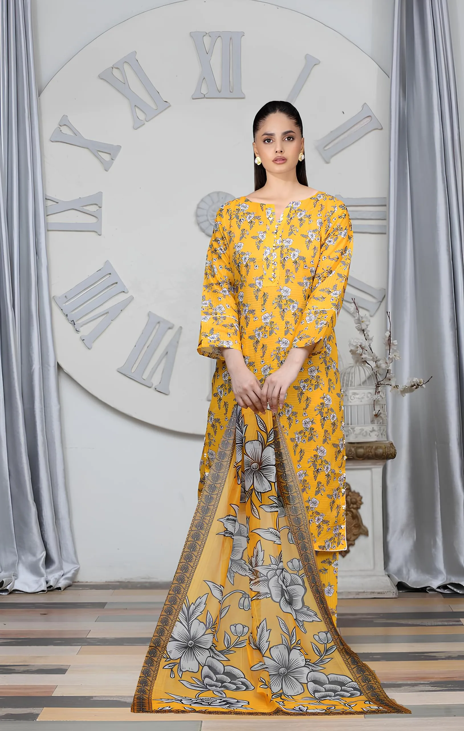 Sunglow 3 Piece Stitched Cotton Print Suit