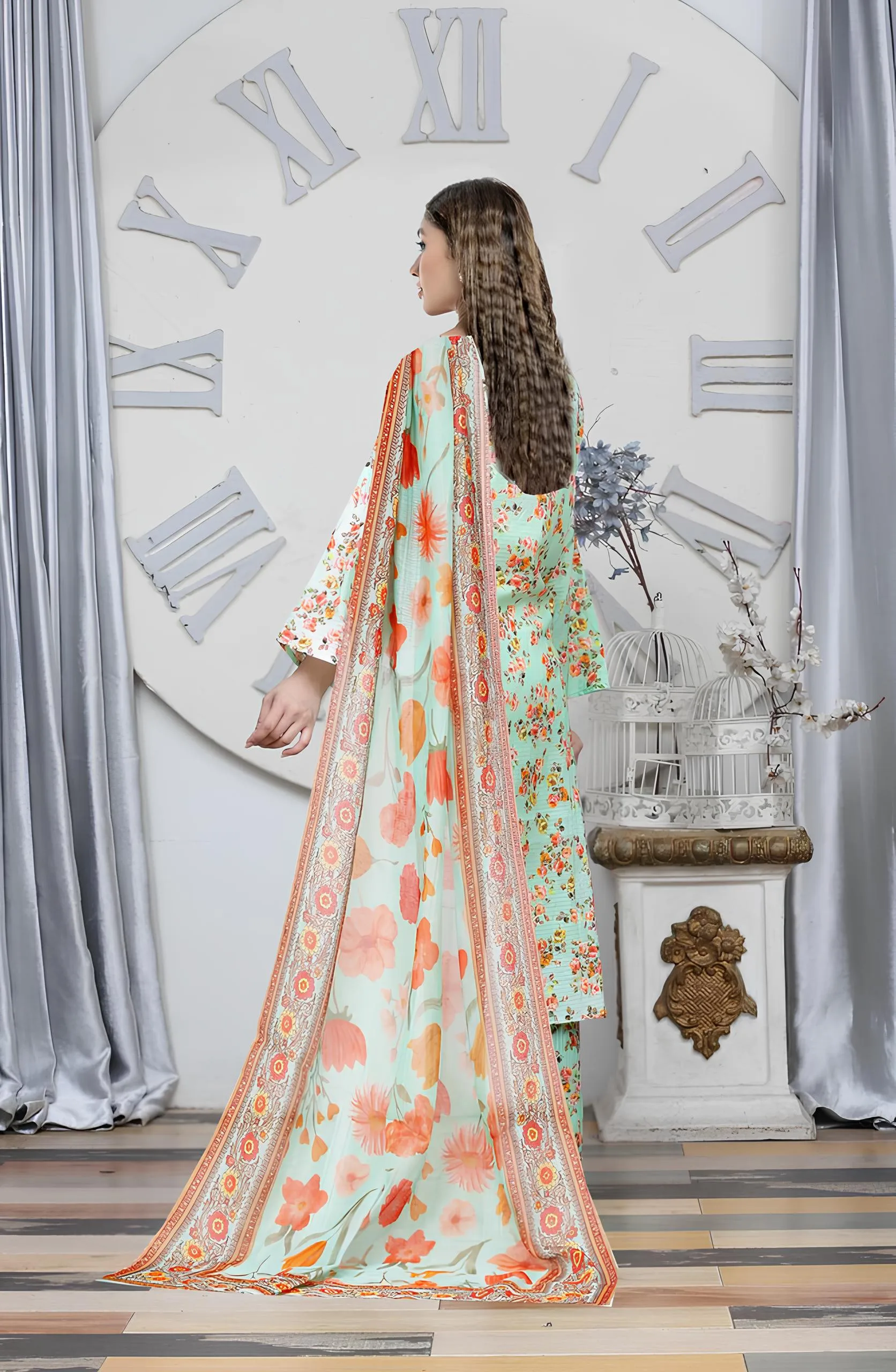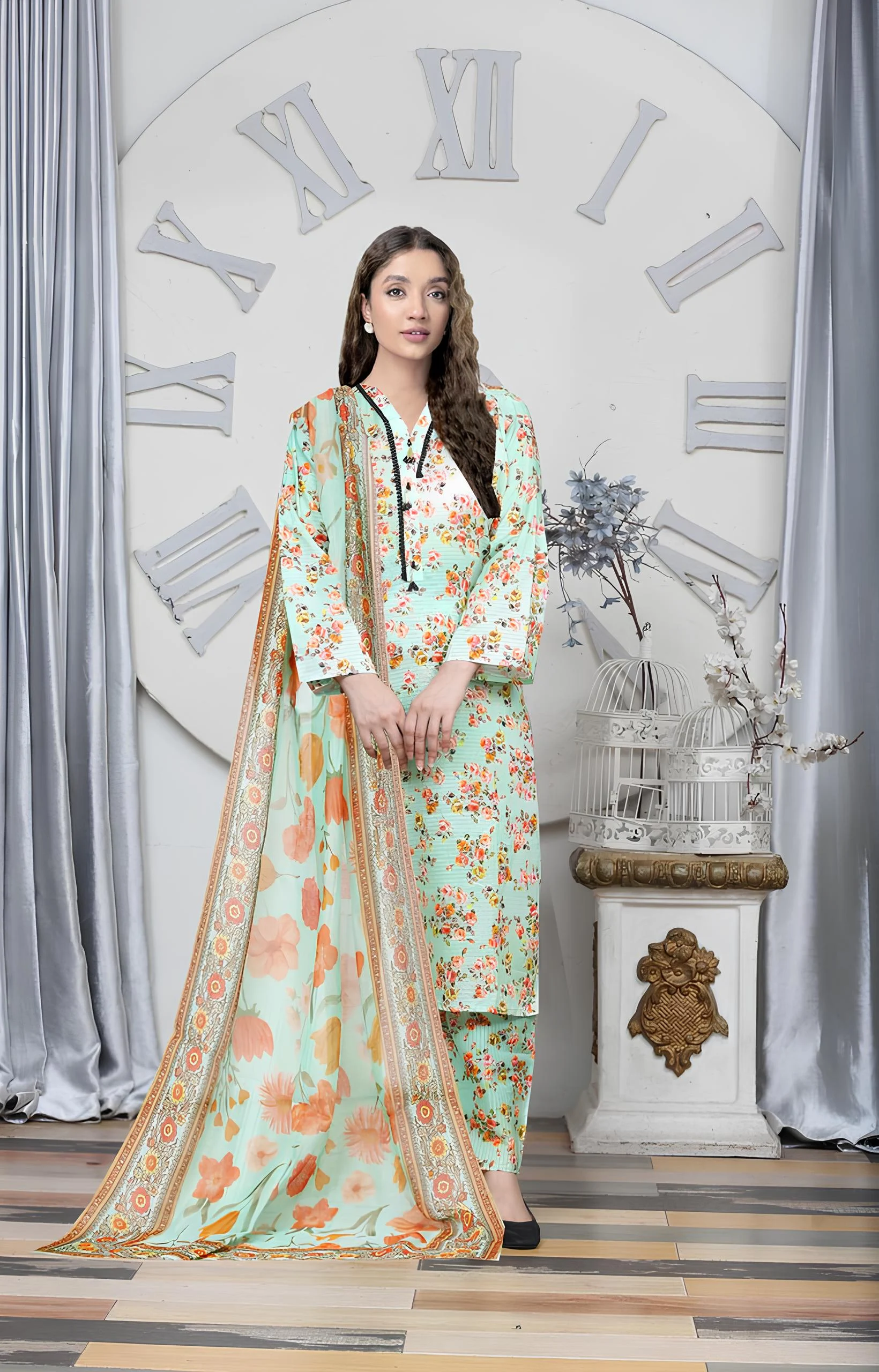 Mint Tulip 3 Piece Stitched Cotton Print Suit