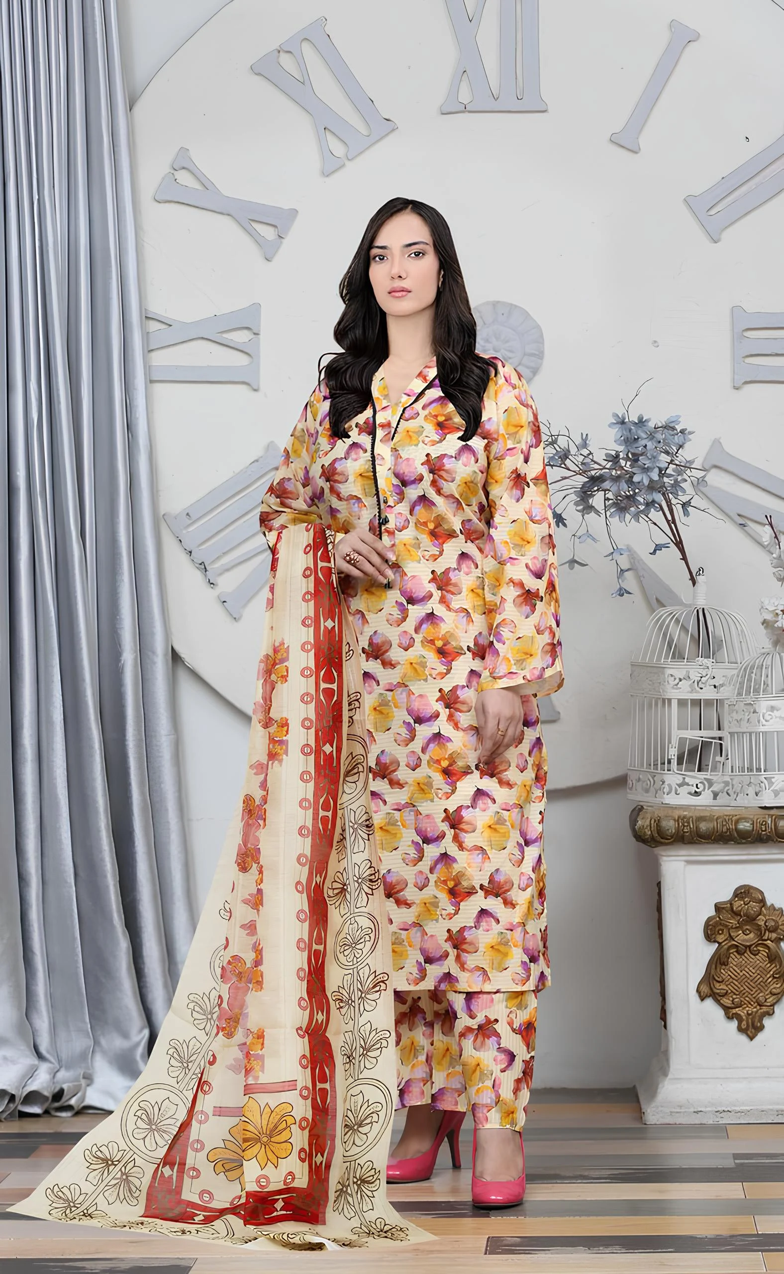 Soft Amber 3 Piece Stitched Cotton Print Suit